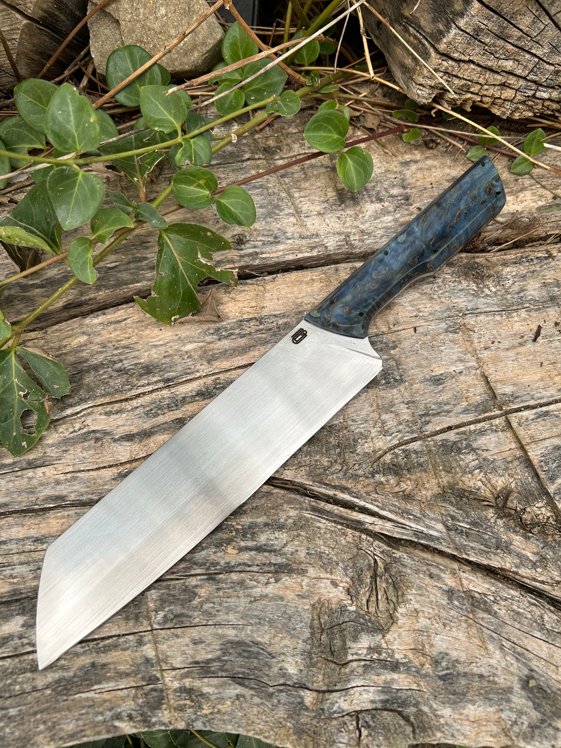 The K-Tip’s distinctive profile isn’t just for looks — the pointed tip allows for detailed tasks, tight cuts, and smooth transitions from slicing to rocking motions. Its form is sleek and purposeful, matched with Gene’s signature balance and craftsmanship. Whether you’re breaking down vegetables, trimming meats, or doing intricate prep, the K-Tip delivers unmatched agility and effortless control.
